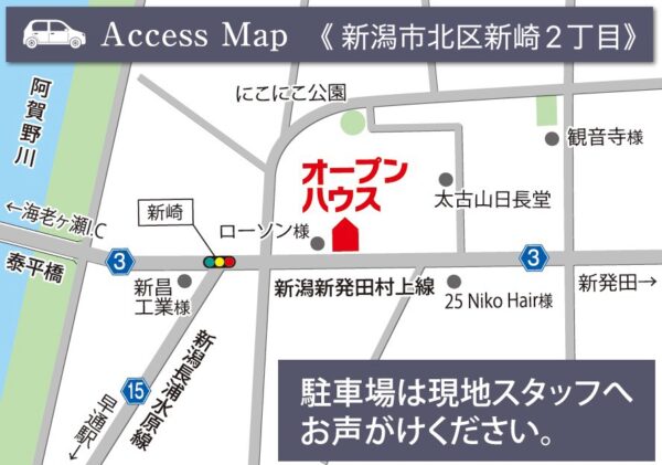 - 新潟市北区新崎2丁目 ローソン 新潟新崎2丁目店様近く のぼり旗を目印にお越しください